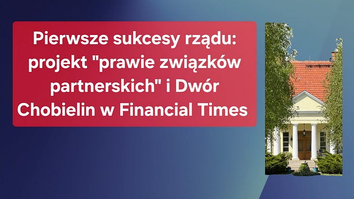 [POLITYKA] Pierwsze sukcesy rządu: projekt "prawie związków partnerskich" i Dwór Chobielin w Financial Times